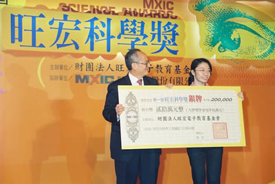 (左一)頒獎人清華大學徐遐生校長(左二)銀牌獎辜惠君