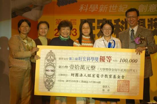 優等獎吳佳玟同學(右三)與基金會董事呂宗昕教授合影