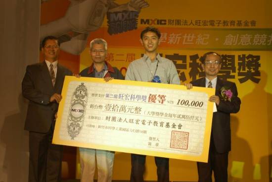 優等獎林彥助同學(右二)與基金會董事蘇炎坤教務長(右一)合影