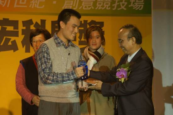 基金會董事蘇炎坤教務長頒發優等獎獎座給蘇上凱同學