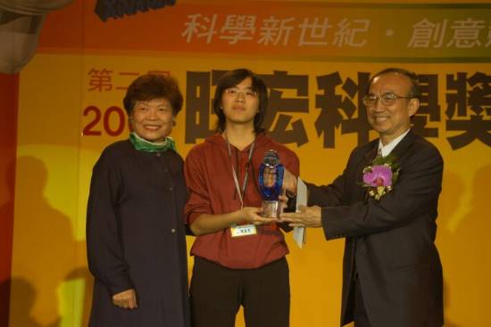 優等獎與陳盈秀同學基金會董事蘇炎坤教務長合影