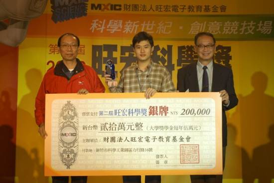 銀牌獎林志軒同學 (中) 國家奈米元件實驗室主任施敏先生 (右一) 合影