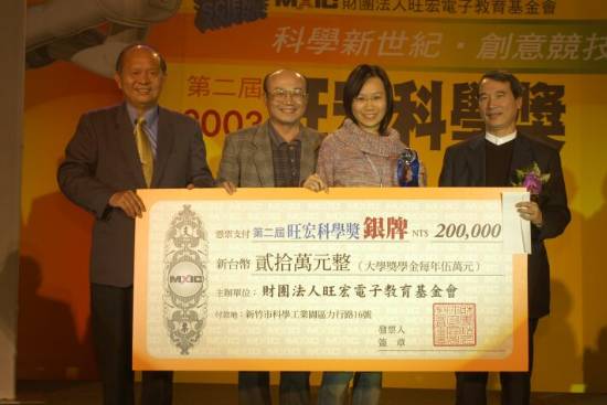 銀牌獎林呈璟同學 (右二) 與科學人雜誌王榮文先生 (右一) 合影