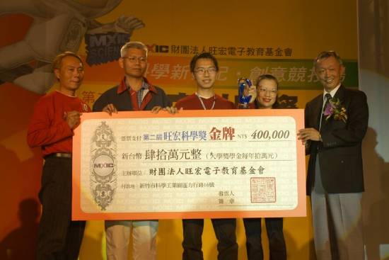 金牌獎同黃日告倫同學 (中) 與召集人李家同先生 (右二) 合影