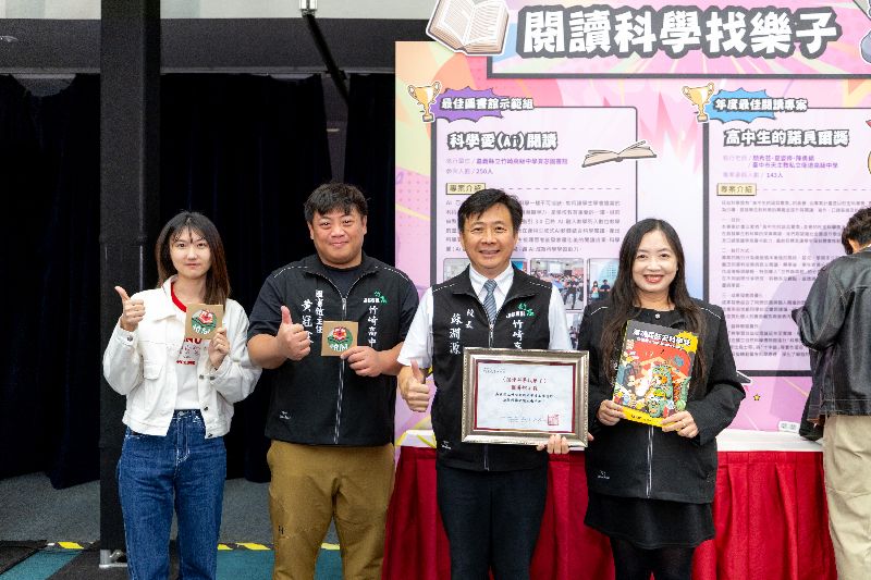竹崎高中賈宓圖書館以「科學愛(Ai)閱讀」為主題,透過生成式AI軟體結合科學閱讀、科學實驗、心智圖製作與成果發表,推廣學生可視化的科學思考與AI輔助學習