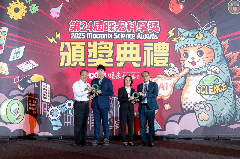 清華大學侯金堆講座、清華學院李家維榮譽院長(左一)頒發優等獎予竹科實中張楷鍹同學(左二)與林怡瑄老師(右二),張簡瑞璨校長共享榮耀