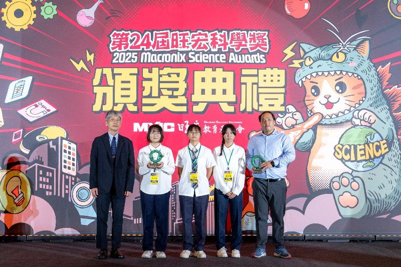 國立科學工藝博物館吳佩修副館長(左一)頒發優等獎予中正高工林子婷、邱品禎、高琣瑱同學(左二、三、四)與徐世函老師(右一)