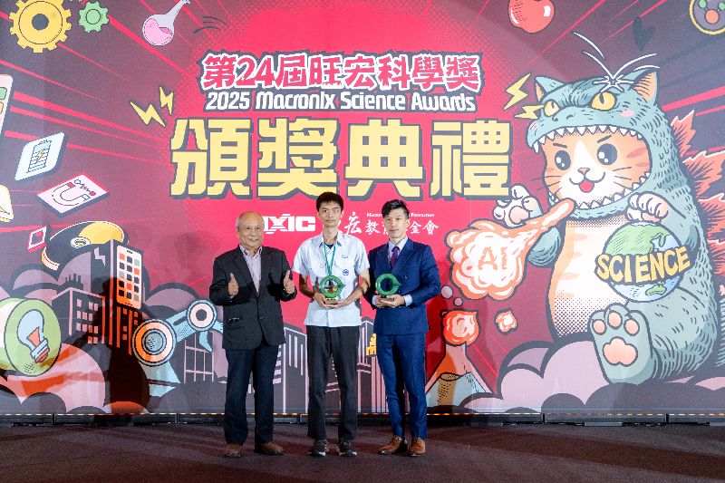 國立自然科學博物館黃文山館長(左)頒發優等獎予師大附中楊鎮源同學(中)與蕭煜修老師(右)