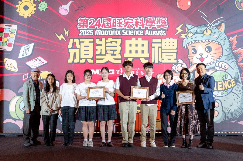 遠哲科學教育基金會林福來董事長(左一)頒發「閱讀科學找樂子」最佳閱讀專案獎狀予臺中市私立衛道中學顏秀芸老師、夏姿婷老師(右二、三),彭大慶教務主任共享榮耀