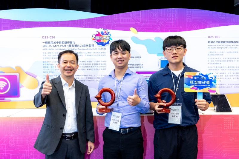 清華大學團隊作品「一個應用於中長距離傳輸之106.25-Gb/s PAM-4接收器於28奈米製程」實現超高速傳輸的光電整合系統,為下一世代AI所需更高的資料需求提供解決方案。