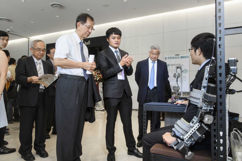 本屆應用組金獎團隊向中央研究院李遠哲院士(左二)、旺宏電子吳敏求董事長(右二)介紹得獎作品
