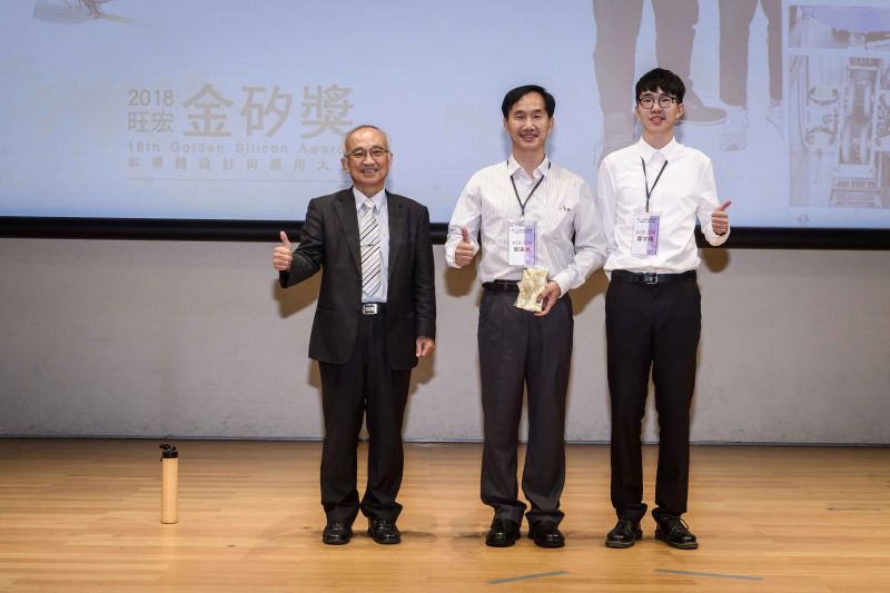 學無止盡,父子一同參與金矽獎實屬難得,也為此屆留下佳話,基金會特請崑山科技大學蘇炎坤校長(左一)致贈紀念小禮