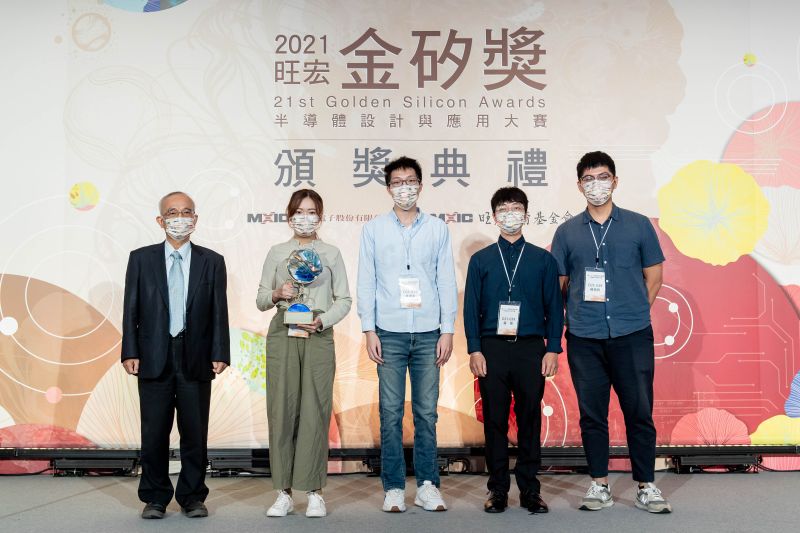 崑山科技大學蘇炎坤講座教授(左一)頒發設計組評審團金獎予陽明交通大學團隊