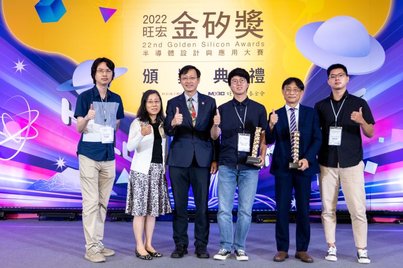 旺宏教育基金會董事臺灣大學郭大維特聘教授(左三)頒發應用組銀獎予成功大學團隊