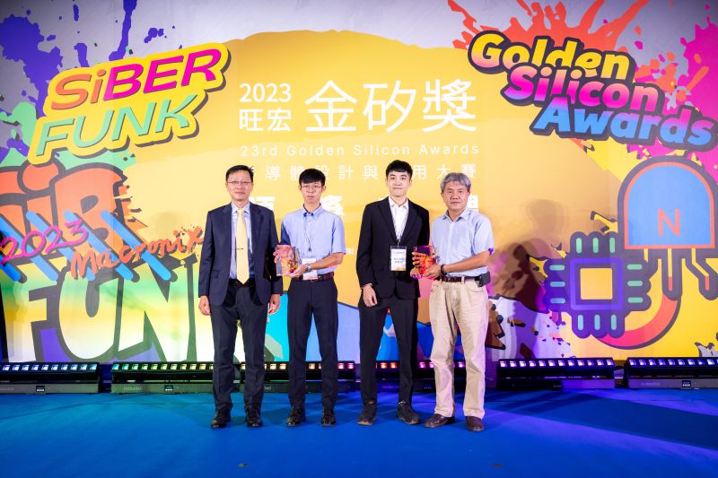 臺灣大學郭大維特聘教授(左一)頒發應用組評審團銅獎予中央大學團隊