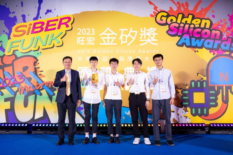 臺灣大學郭大維特聘教授(左一)頒發應用組評審團銅獎予臺灣大學團隊