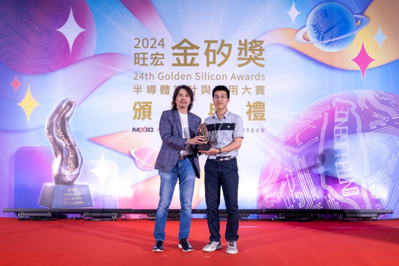 教育部葉丙成次長(左)頒發設計組評審團金獎予臺灣大學團隊。