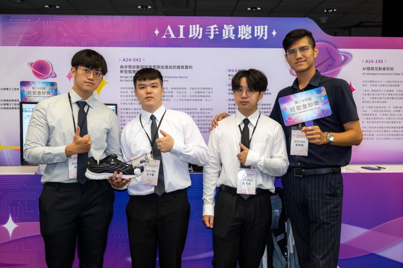 逢甲大學、中山大學團隊作品「具步態診斷與防跌預測並連結防護裝置的新型智慧鞋設計」整合三維多參數感測、智慧模擬建模、自動控制及機電整合等技術,可進行即時動態分析,並預警保護。